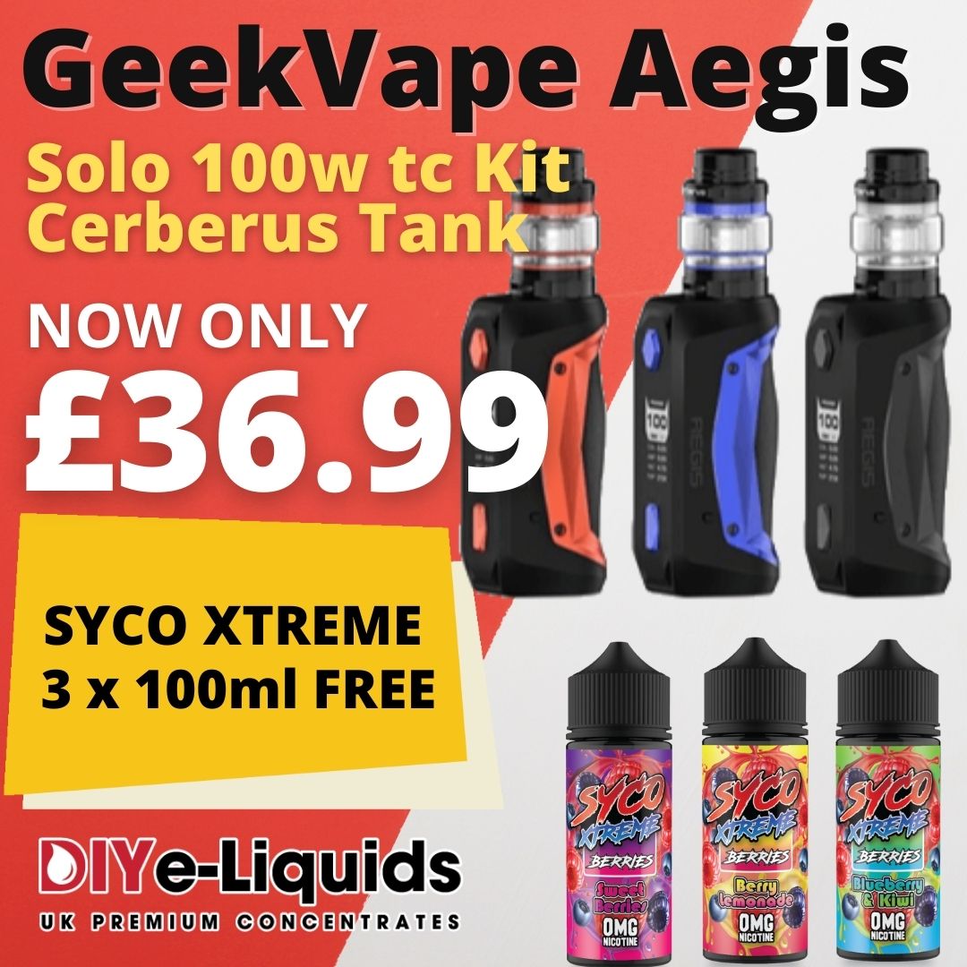 - GeekVape Aegis Solo 100W Mod: Offers 100W of power with rugged, shockproof, and waterproof construction for durability.